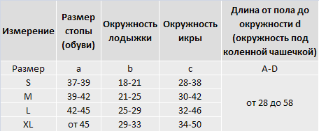 Обратите внимание! При подборе размера гольфов, чулок и колгот руководствуйтесь приведенными здесь таблицами. Измерения нужно проводить утром, до появления отеков на ногах.