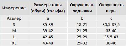 Обратите внимание! При подборе размера гольфов, чулок и колгот руководствуйтесь приведенными здесь таблицами. Измерения нужно проводить утром, до появления отеков на ногах.
